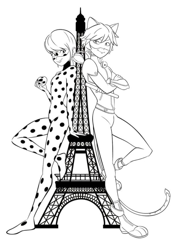 Biedronka i Czarny Kot przed wieżą Eiffla