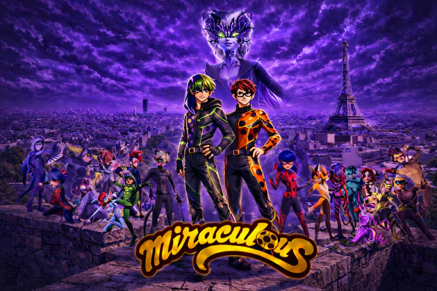 Biedronka, Tiki, Czarny Kot i Plagg na wieży Eiffla